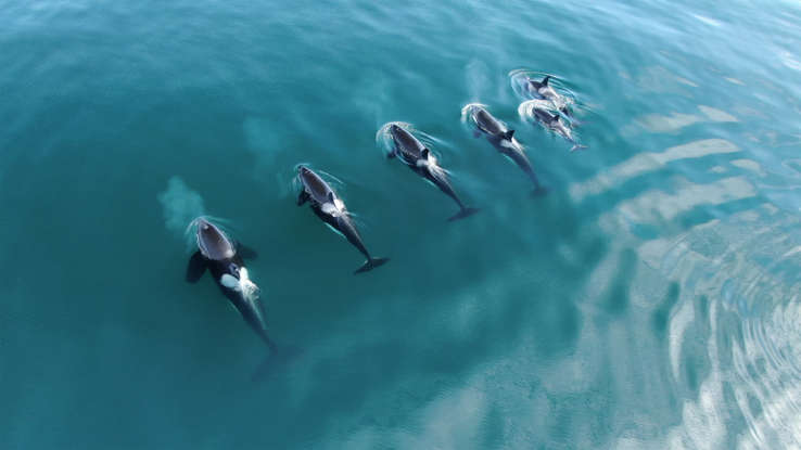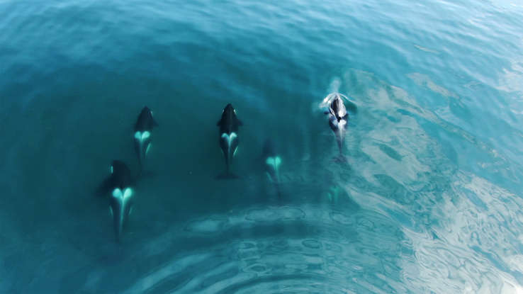 2018년, 갈라파고스 섬 근처의 작은 범고래 무리가 바다 거북을 잡아먹지 않고