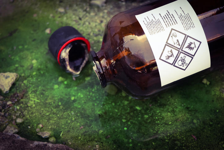버려진 불산 용기를 밟으면서 화학물질에 노출됐다.